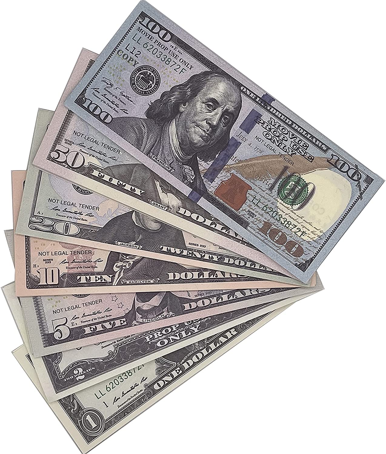 Copy Money It will not pass as real currency and cannot be modified to look exactly like real currency. Movie Prop Money Solely designed for Movies,TV,Videos,Advertising,Play,Training, Novelty and Media Productions. We don't skimp on quality. Each bill is printed on high quality paper and ink. Each bill lacks no defects. You can get one stack, 140PCS.$100(20 PCS), $20(20 PCS), $50(20 PCS), $10(20 PCS), $5(20PCS), $2(20PCS), $1 (20PCS) each note.