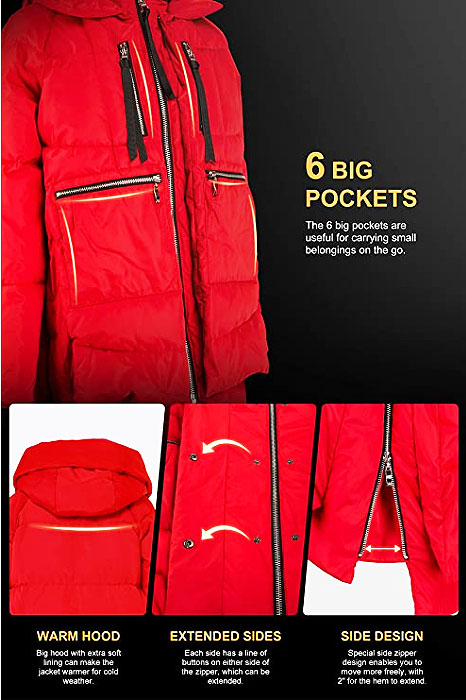 - Featuring warm fleece lined hood, special side zippers, 6 big pockets, it is warm and cute for you to enjoy the outdoor activity in wintry days.